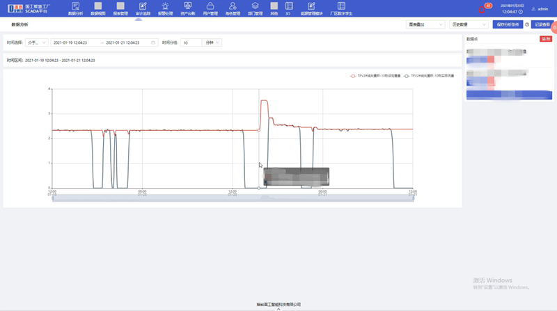 國工智能工業物聯網平臺具有數據監視以及數據趨勢分析的基本功能,我們可以通過數據趨勢分析功能對矢重秤歷史數據以及實時數據進行查看、追溯。