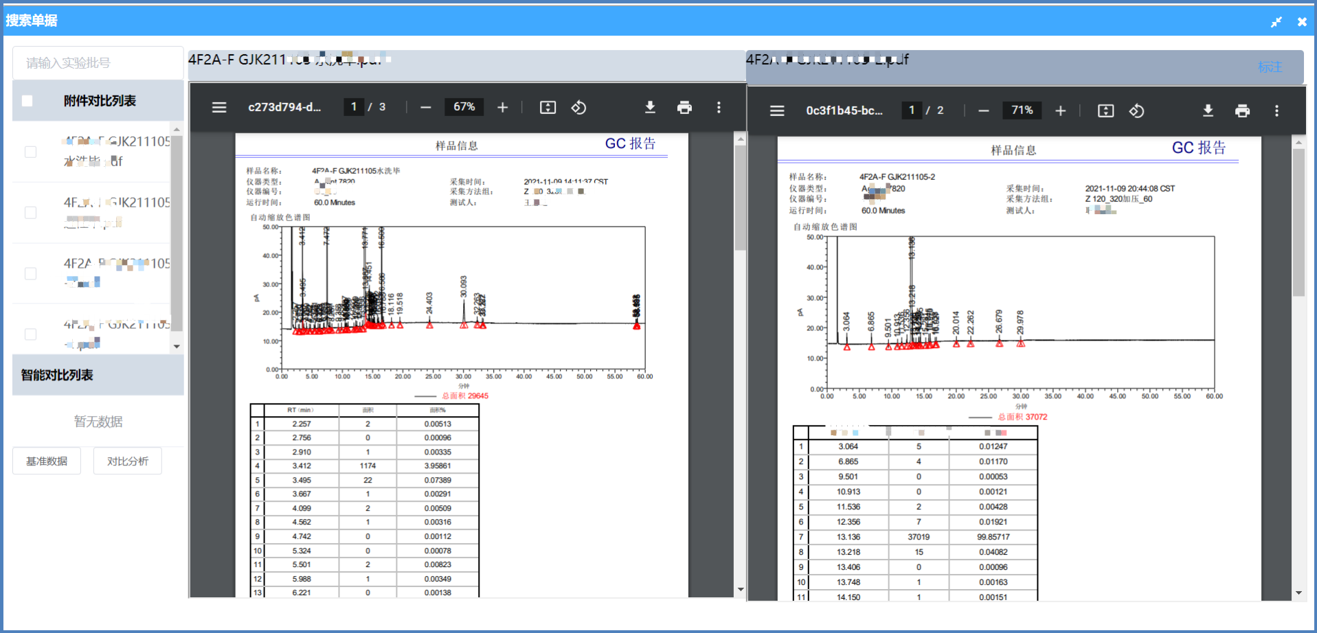 隨著化工行業(精細化工)日益發展,對產品要求越來越嚴謹。在對產品檢驗的過程中液相色譜(LC)、氣相色譜(GC)的檢驗結果對產品具有關鍵性因素,但是檢驗過程中,進行液相色譜(LC)、氣相色譜(GC)檢測時,產品中含有的雜質含量較多,分辨度難,需要人工與往期檢驗數據進行對比,且人工對比數據繁瑣,浪費大量的時間。